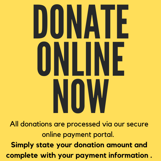 NOTE: All donations are processed via our secure online payment portal.  Simply state your donation amount and complete with your payment information .